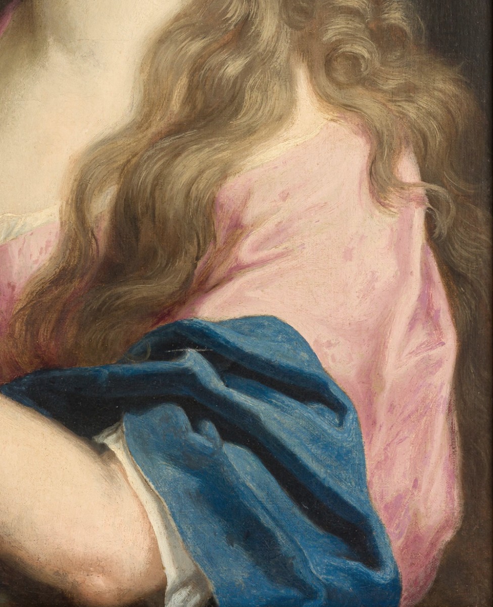 This leads to the conclusion that the present portrait was executed by a French artist active in the late seventeenth century, who took as his inspiration Nocret’s Madame de Ludres, but was likely commissioned to paint this portrait for another French aristocratic lady, who wished to be portrayed as the Magdalene.