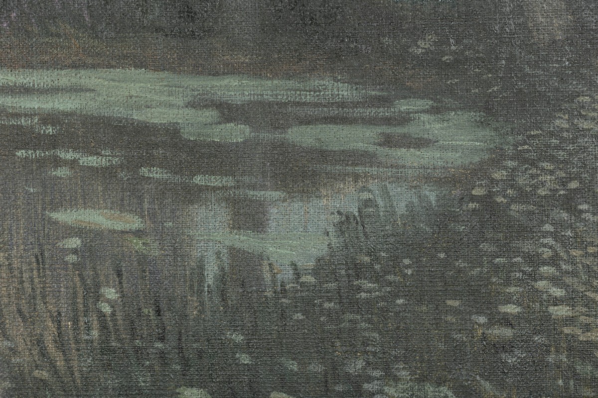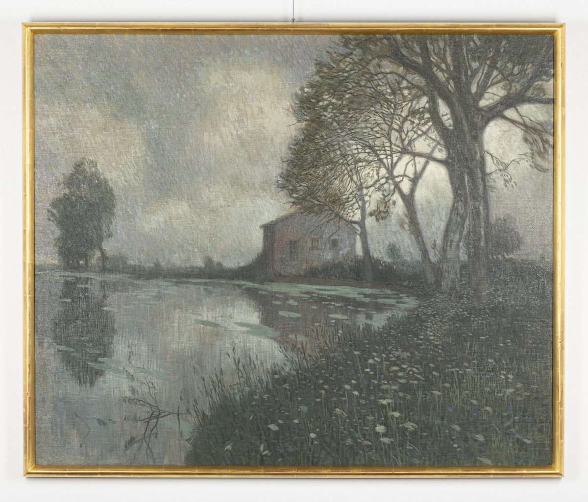 This painting demonstrates Quittner's talent and the influence of his dual training in a particularly impressive way. While the sky and water surface are masterfully captured on canvas in the tradition of the great French Impressionists, the tree and meadow are painted entirely in the unique style of Viennese Secessionism. Both elements merge into a masterful whole in this work, creating a unique and wonderful work of art.