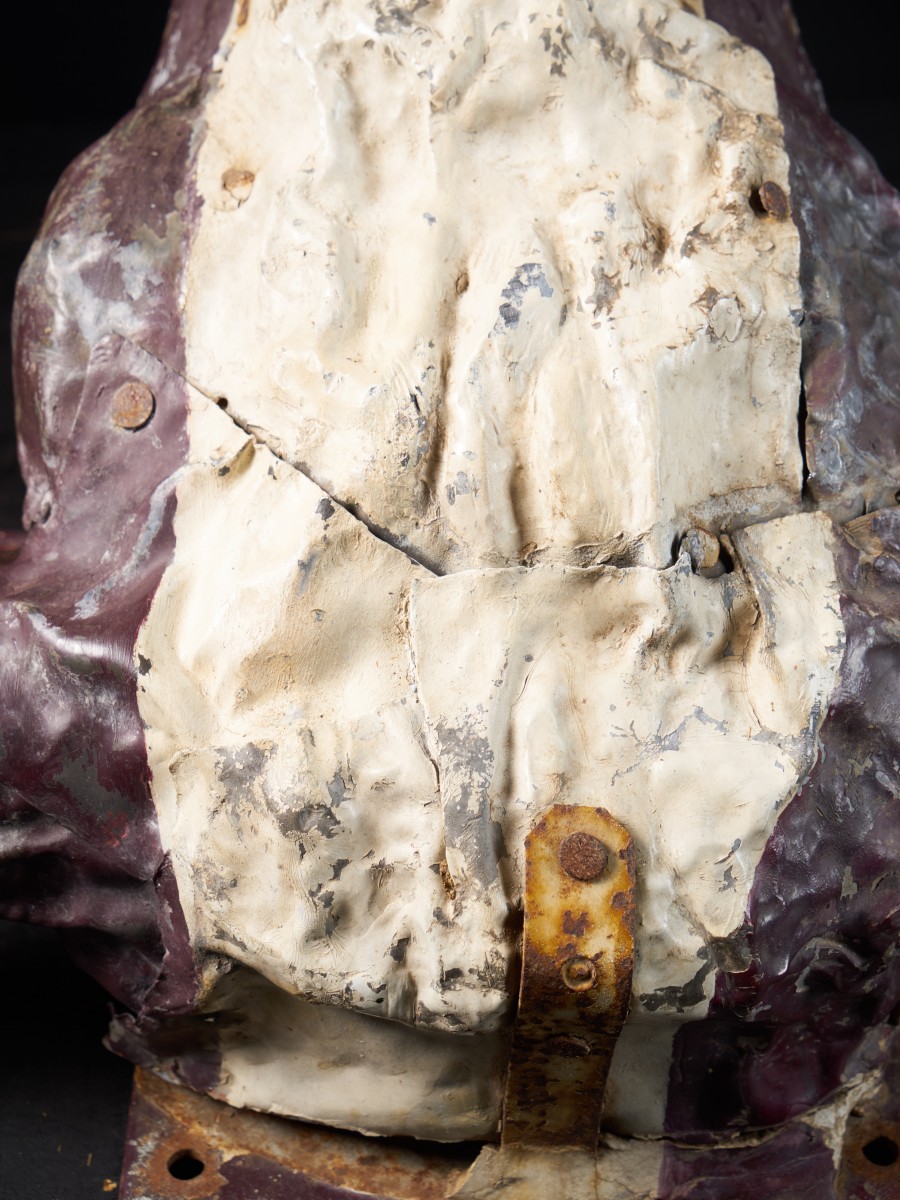 19 th C Butcher's Exterior Shop Sign of a wooden Steer Head covered with polychromed weathered lead.