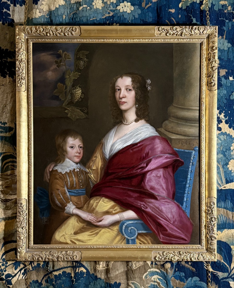 Fine and historically significant English school portrait of a a lady and her son, traditionally identified as Lucy Hutchinson (1620-1681) and Thomas or Edward Hutchinson (b. 1639).