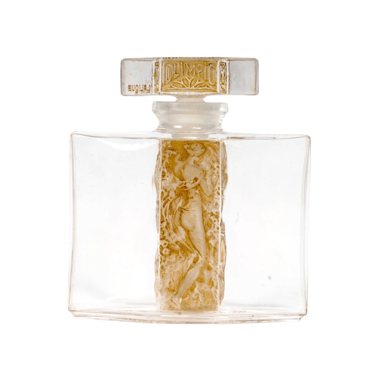 Perfume Bottle "Olimpic" made in glass with sepia patina by René Lalique in 1937 for Hermanny for the 1937 Olympic Games.