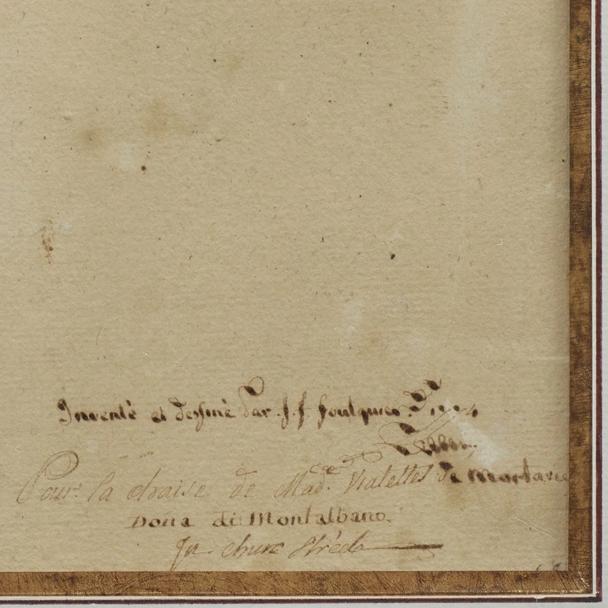 The drawing, intended for a "Miss Vialettes de Mortarieu," likely reflects a commission linked to this high social class, although the exact connection cannot be established. It could be associated with a family residence in Montauban.